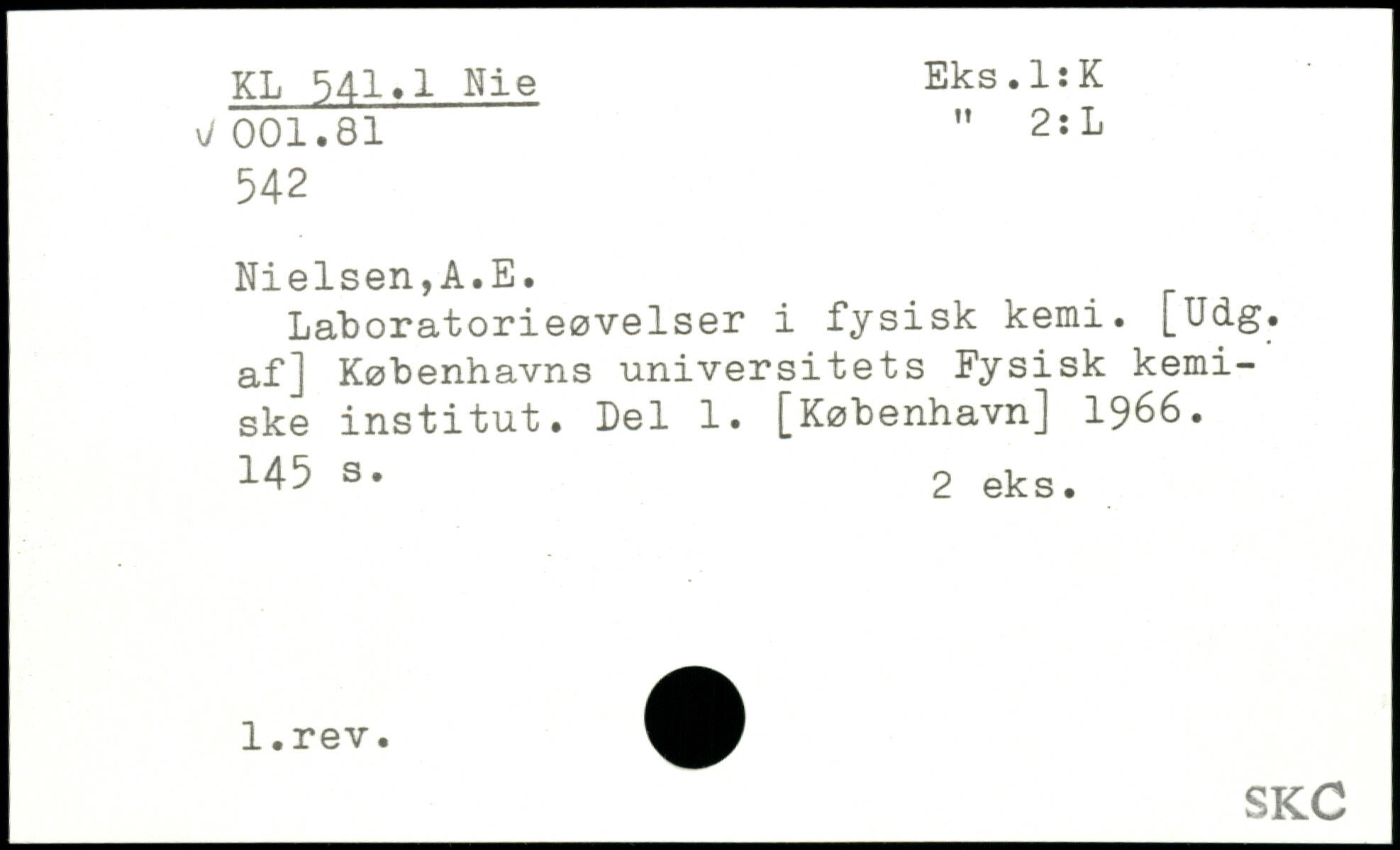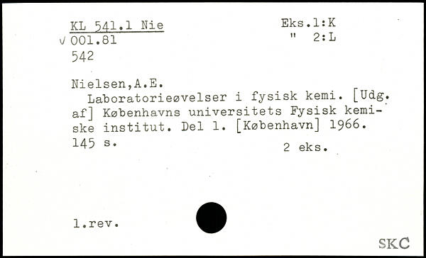 Laboratorieøvelser i fysisk kemi. [Udg. af] Københavns universitets Fysisk kemiske institut. Del 1.