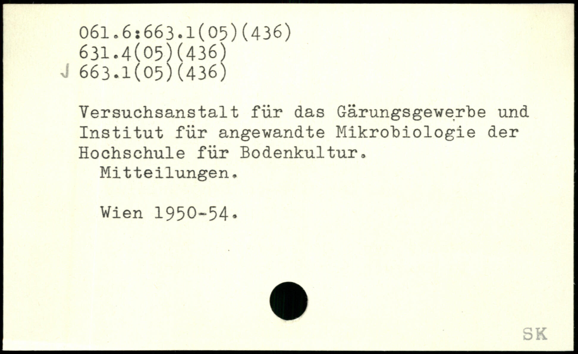 Versuchsanstalt für das Gärungsgewerbe und Institut für angewandte Mikrohiologie der Hochschule für Bodenkultur. Mitteilungen. Vien 1950-54.
