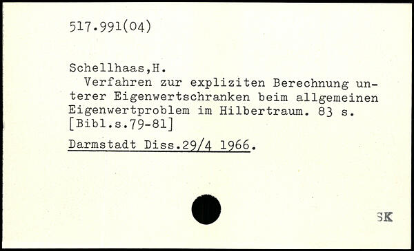 Verfahren zur expliziten Berechnung unterer Eigenwertschranken beim allgemeinen Eigenwertproblem im Hilbertraum.