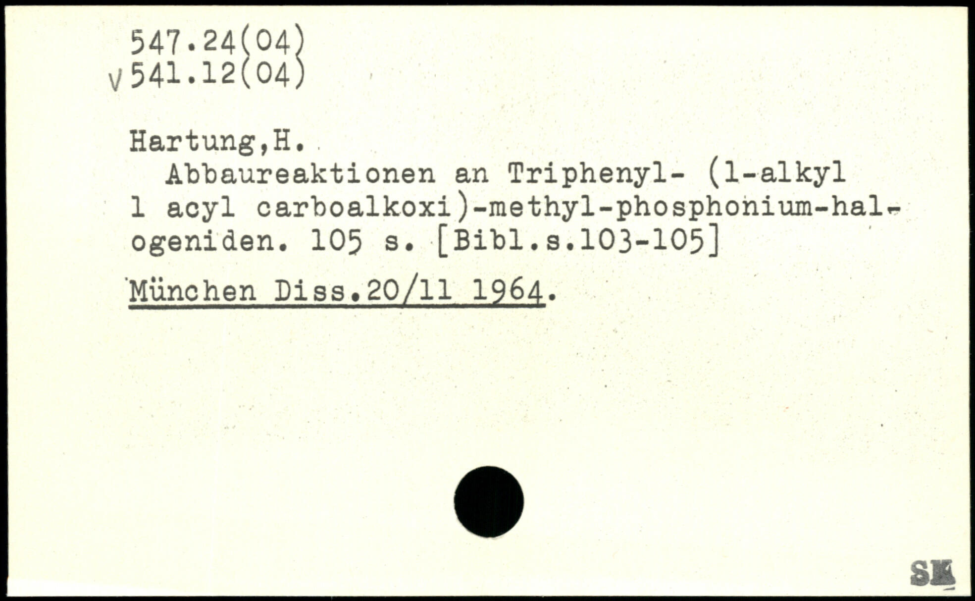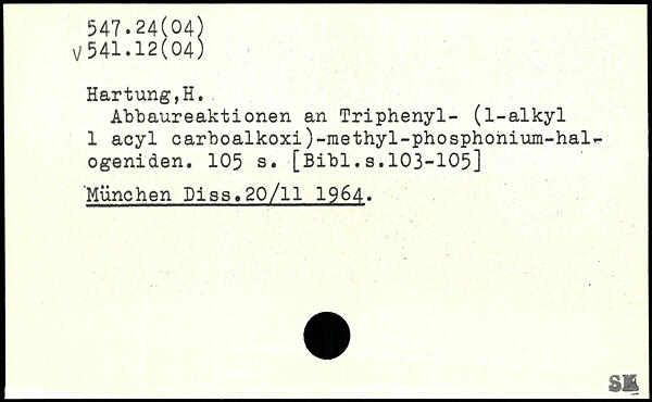 Hartung,H.. Abbaureaktionen an Triphenyl- (l-alkyl 1 acyl carboalkoxi)-methyl-phosphonium-hal.-ogeniden.