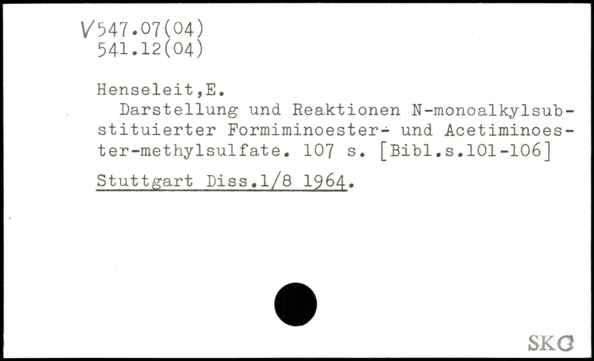 Darstellung und Reaktionen N-monoalkylsub-stituierter Formiminoester- und Acetiminoes-ter-methylsulfate.