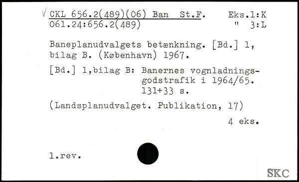 Baneplanudvalgets betænkning. [Bd.] 1, bilag B. (København) 19^7. [Bd.] 1,bilag B: Banernes vognladningsgodstrafik i 1964/65.