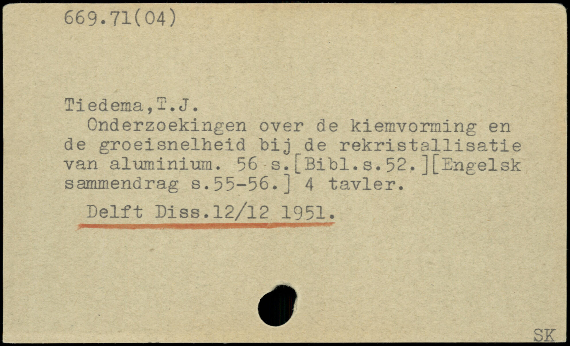 Cnderzoekingen over de kiemvorraing en de groeisnelheid bij de rekristallisatie van aluminium. 56-s.