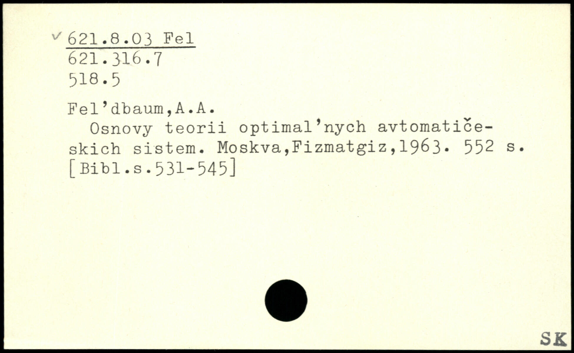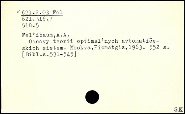 Fel’dbaum,A.A. Osnovy teorii optimal’nych avtomatice-skich sistem.