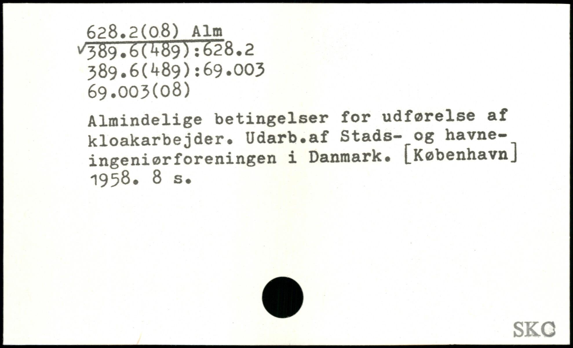Almindelige betingelser for udførelse af kloakarbejder. Udarb.af Stads- og havneingeniørforeningen i Danmark.