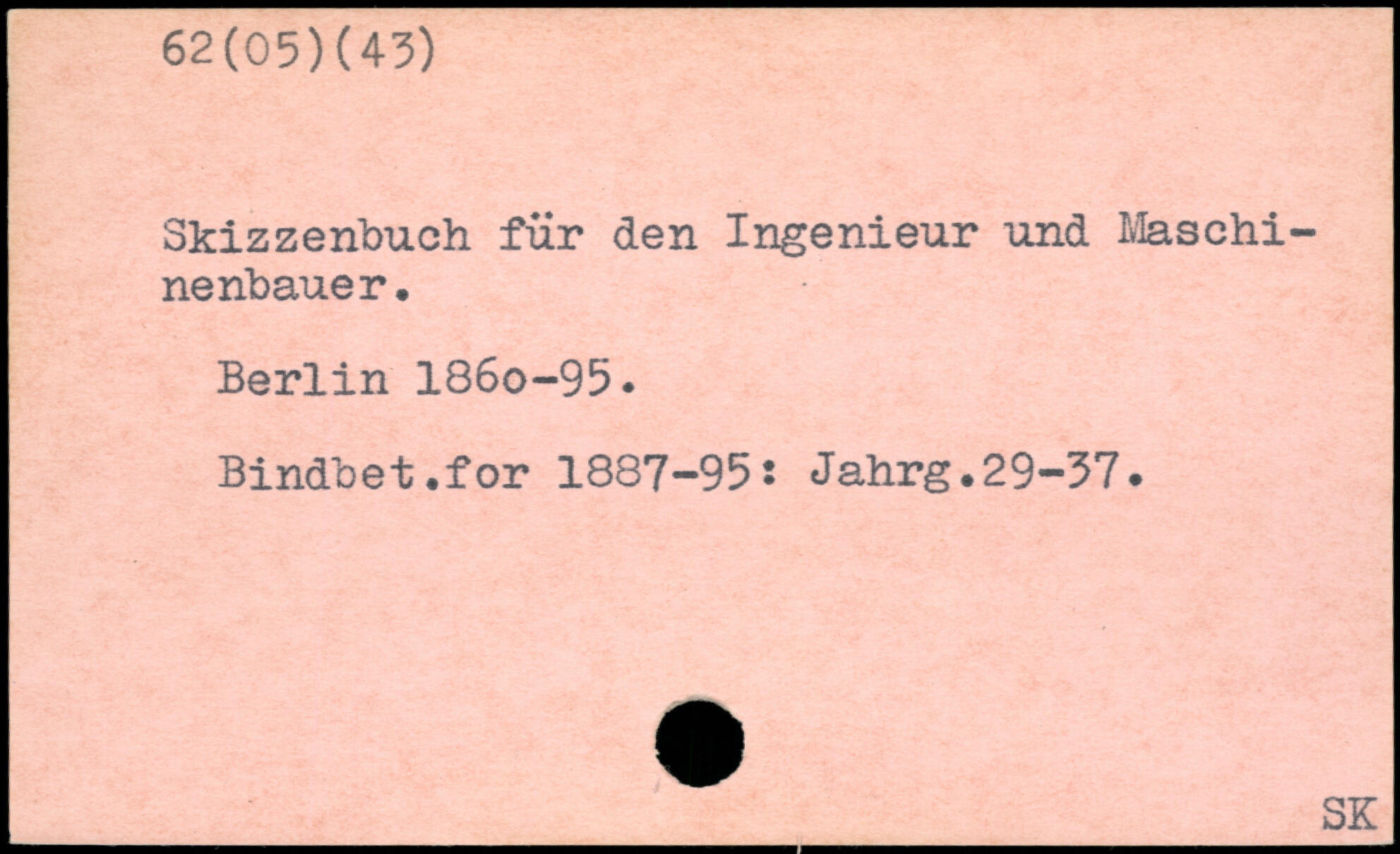 Skizzenbuch für den Ingenieur und Maschinenbauer. Berlin 186o-95. Bindbet.for 1887-95î Jahrg.29-37.