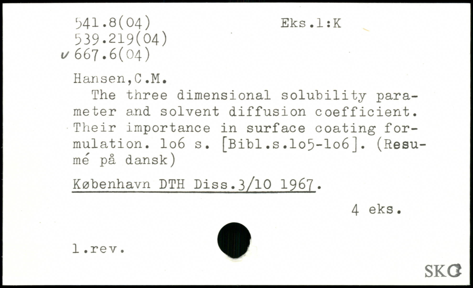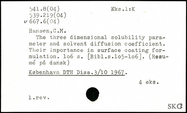 The three dimensional solubility parameter and solvent diffusion coefficient. Their importance in surface coating formulation. I