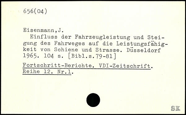 Einfluss der Fahrzeugleistung und Steigung des Fahrweges auf die Leistungsfähig-keit von Schiene und Strasse. Düsseldorf 1965.
