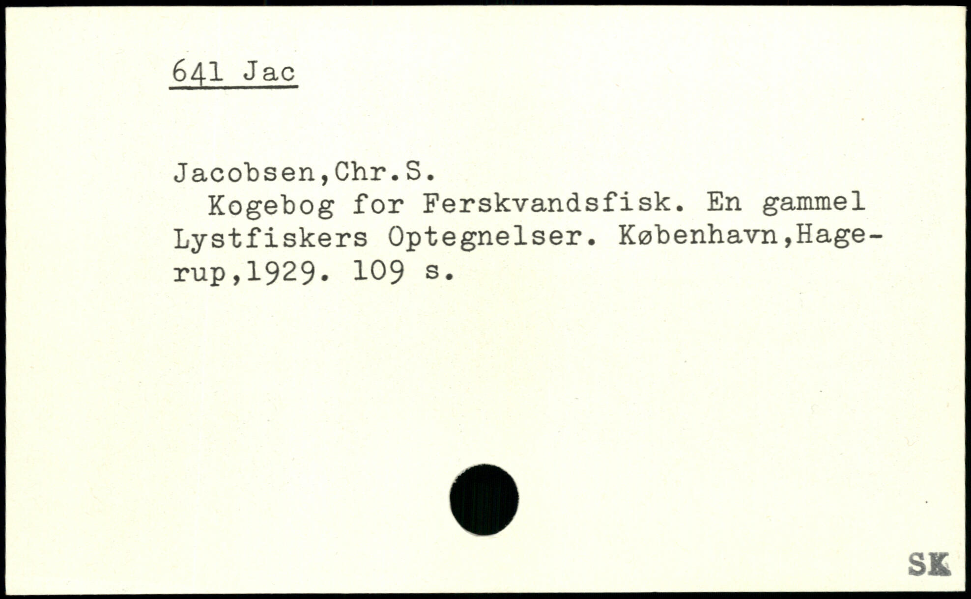 Jacobsen,Chr.S. Kogebog for Ferskvandsfisk. En gammel Lystfiskers Optegnelser.