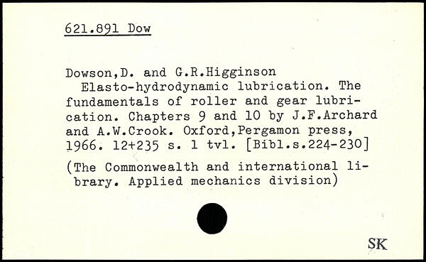 Elasto-hydrodynamic lubrication. The fundamentals of roller and gear lubrication. Chapters 9 and 10 by J.F.Archard and A.W.Crook.