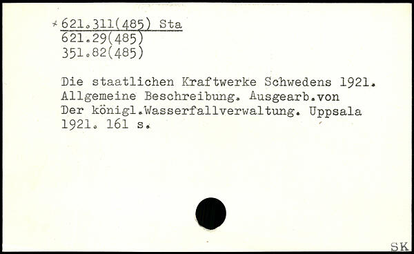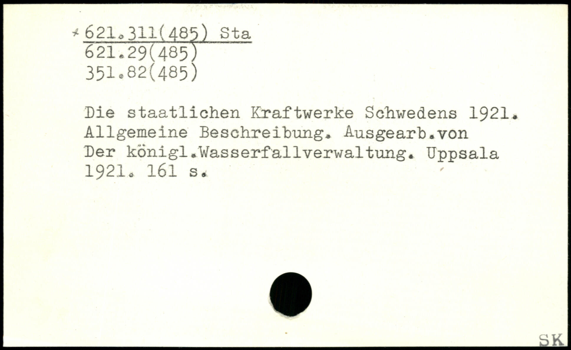 Die staatlichen Kraftwerke Schwedens 1921. Allgemeine Beschreibung. Ausgearb.von Der konigl.Wasserfallverwaltung.