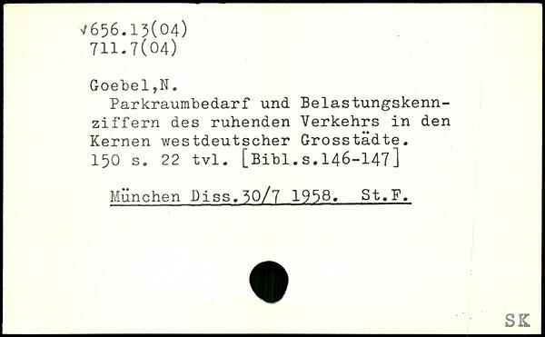 Parkraumbedarf und Belastungskennziffern des ruhenden Verkehrs in den Kernen westdeutscher Grosstädte.