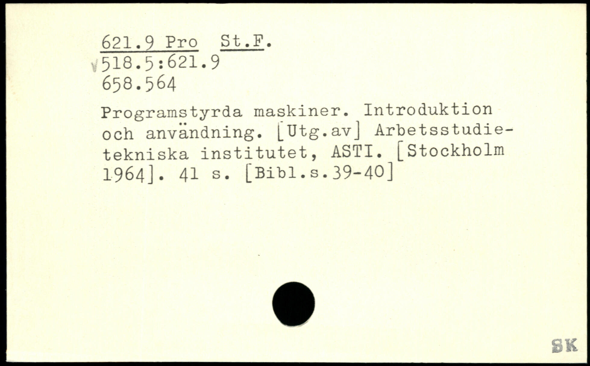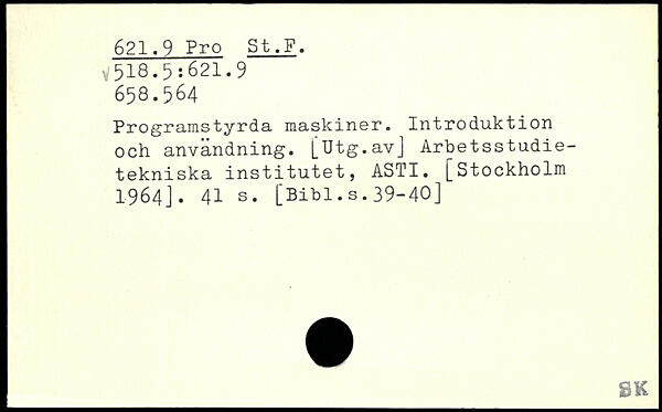 Programstyrda maskiner. Introduktion och användning. [Utg.avJ Arbetsstudie-tekniska institutet, ASTI.