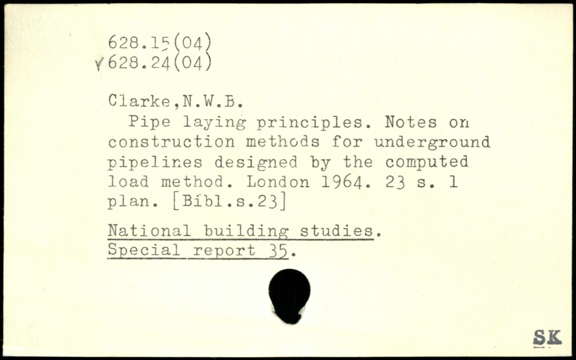 Pipe laying principles. Notes on construction methods for underground pipelines designed by the computed load method.