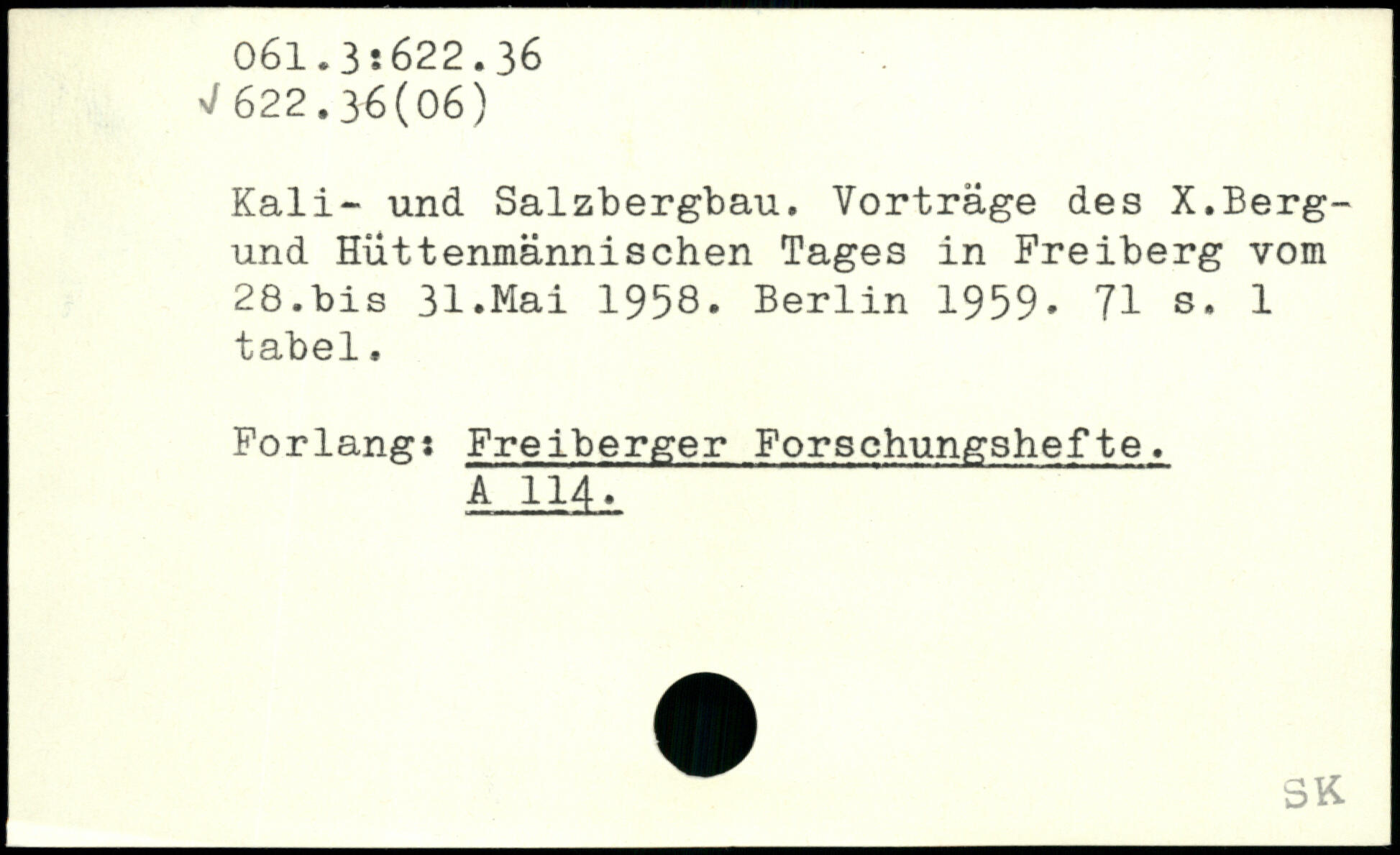 Kali- und Salzbergbau. Vorträge des X.Berg-und Hüttenmännischen Tages in Freiberg vom 28.bis 31.Mai 1958.