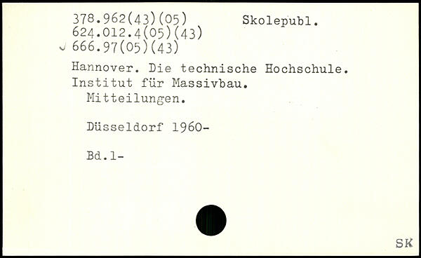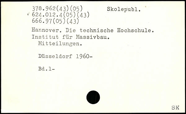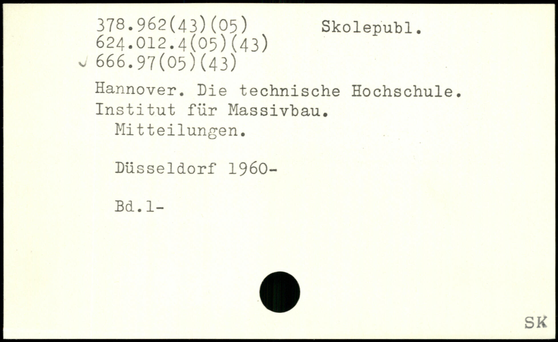 Hannover. Die technische Hochschule. Institut für Massivbau. Mitteilungen. Düsseldorf 1960- Bd.l-