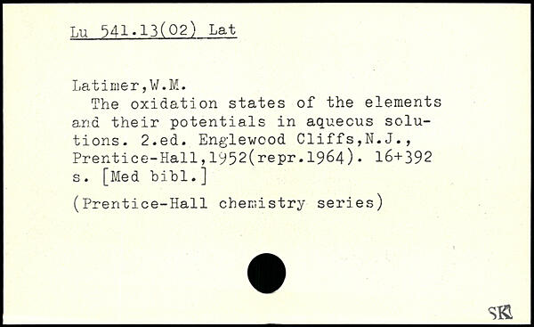 The oxidation states of the elements and their potentials in aqueous solutions.