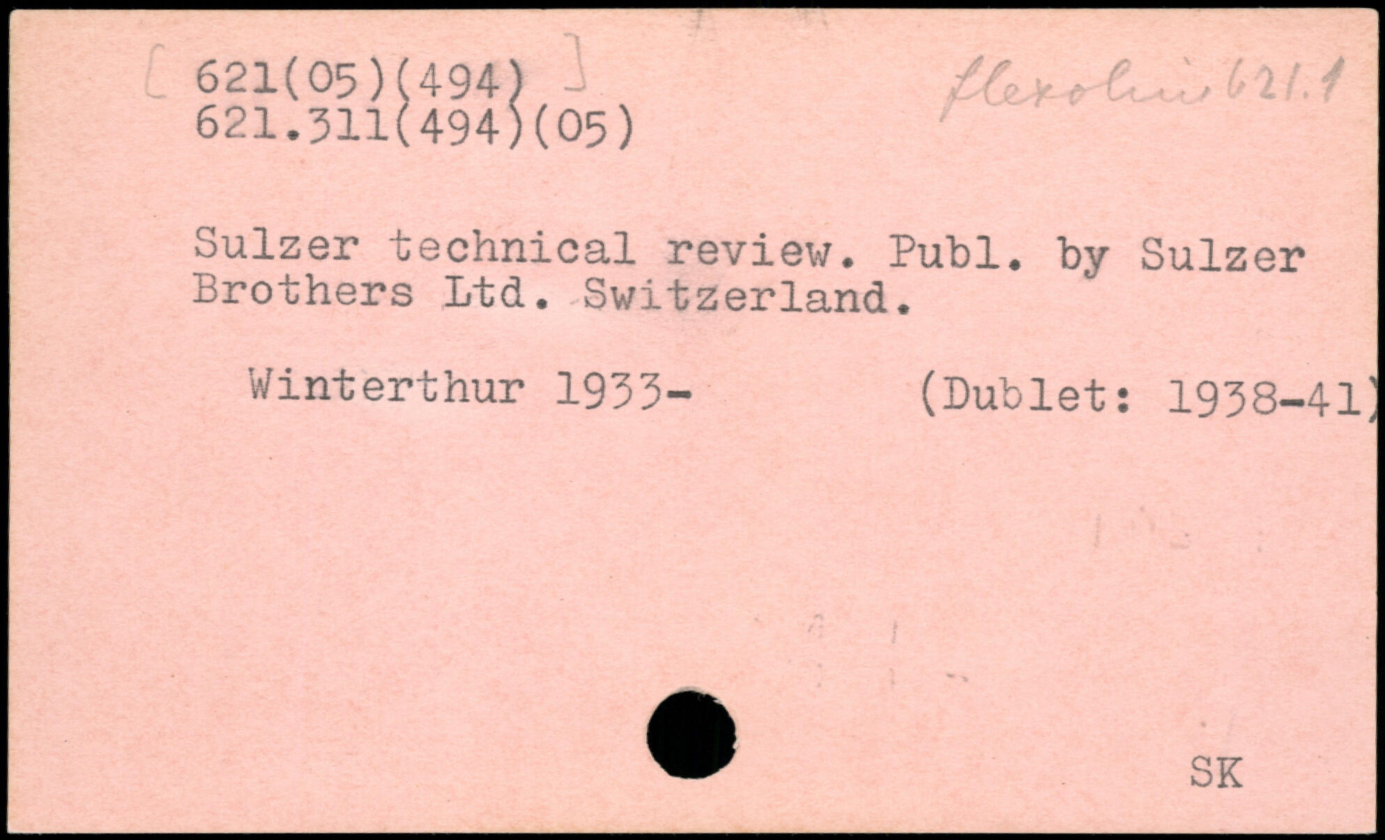 Sulzer technical review, Publ, by Sulzer Brothers Ltd. Switzerland. Winterthur 1933- (Dublets 1938-41]