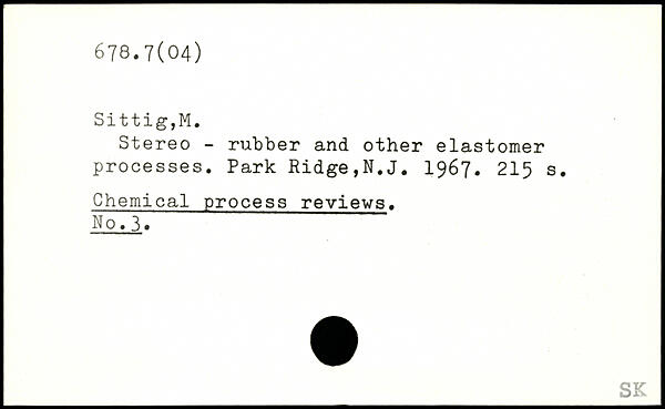 Stereo - rubber and other elastomer processes. Park Ridge,N.J. 1967.