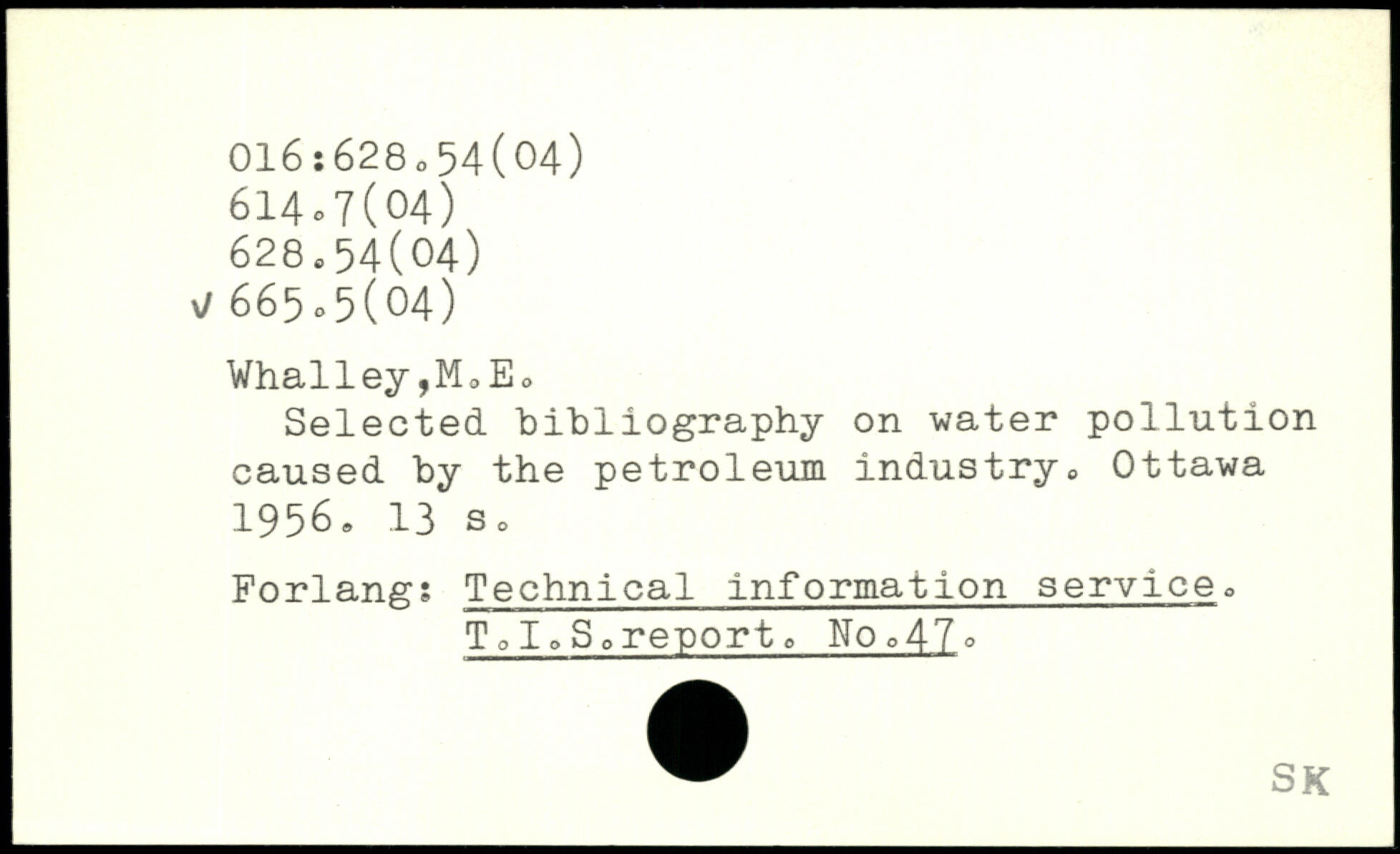 Selected bibliography on water pollution caused by the petroleum industry.