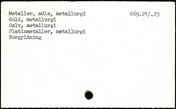 Metaller, ædle, metallurgi 669.21/. 23 Guld, metallurgi Sølv, metallurgi Platinmetaller, metallurgi Forgyldning