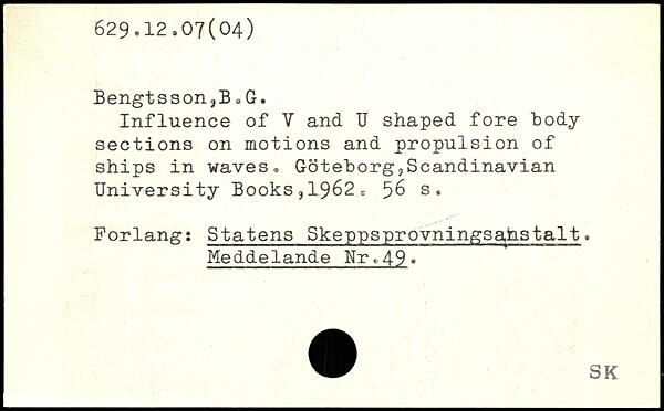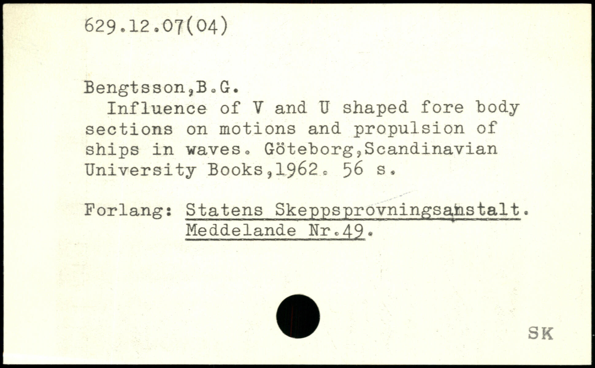 Influence of V and U shaped fore body sections on motions and propulsion of ships in waves.
