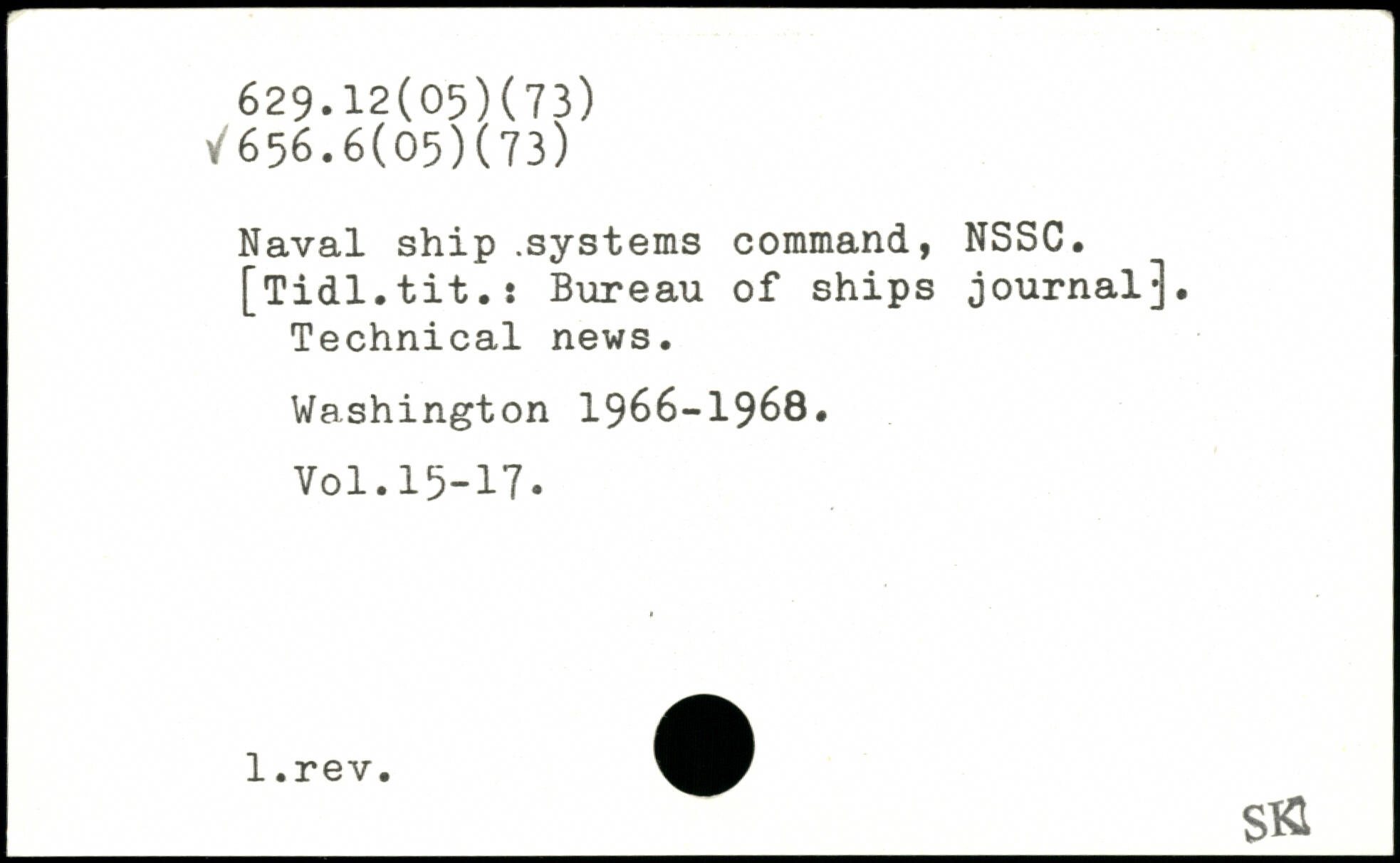Naval ship .systems command, NSSC. [Tidl.tit.: Bureau of ships journal]. Technical news.
