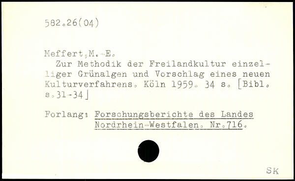 Mef f ert jM, -E0 Zur Methodik der Freilandkultur einzelliger Grünalgen und Vorschlag eines neuen Kulturverfahrens.
