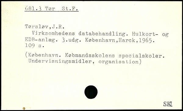 Virksomhedens databehandling. Hulkort- og EDB-anlæg.