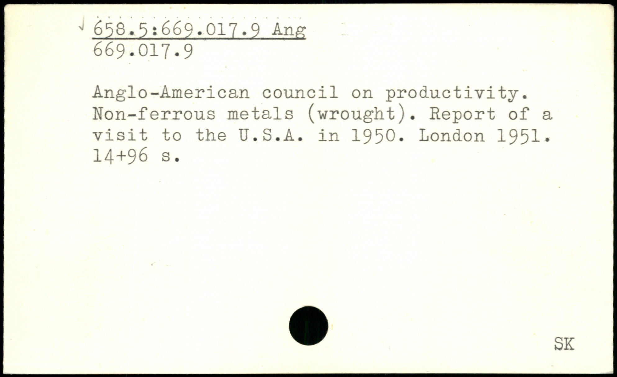 Anglo-American council on productivity. Non-ferrous metals (wrought). Report of a visit to the U.S.A. in 1950.