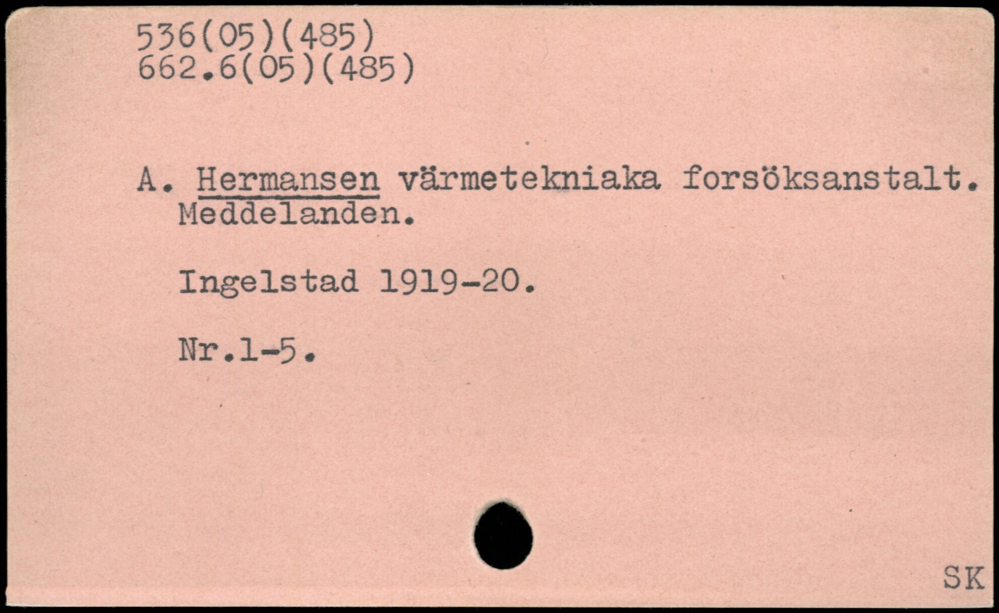 A. Hermansen värmetekniaka försöksanstalt. Meddelanden. Ingelstad 1919-20. Nr.1-5.
