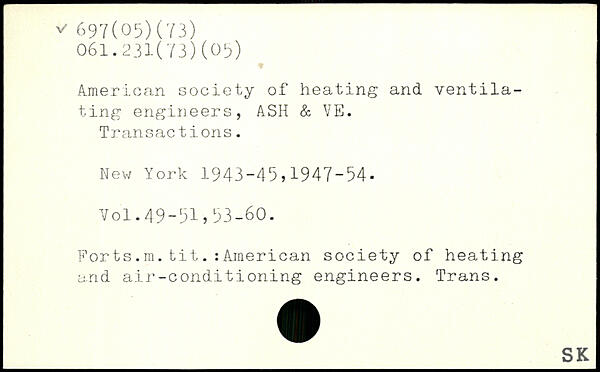 American society of heating and ventilating engineers, ASH & VE. Transactions.