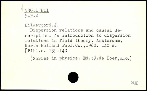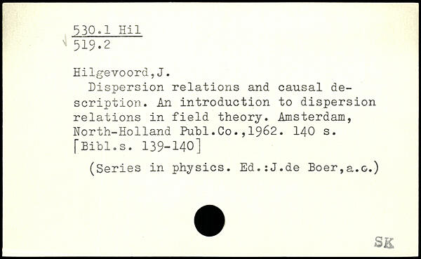 Dispersion relations and causal description. An introduction to dispersion relations in field theory. Amsterdam, North-Holland Publ.Co.,1962.