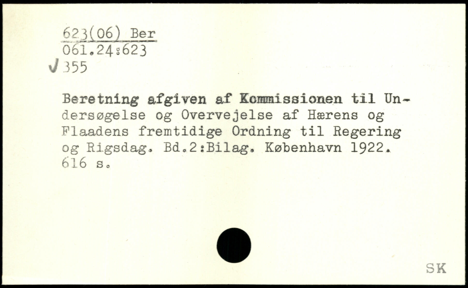 Beretning afgiven af Kommissionen til Undersøgelse og Overvejelse af Hærens og Flaadens fremtidige Ordning til Regering og Rigsdag. Bd,2:Bilag.