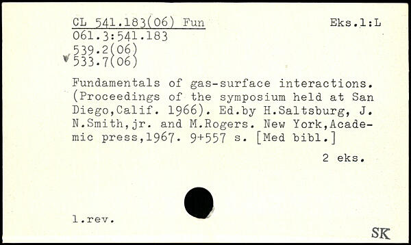 Fundamentals of gas-surface interactions. (Proceedings of the symposium held at San Diego,Calif. 1966). Ed.by H.Saltsburg, J. N.Smith,jr. and M.Rogers.