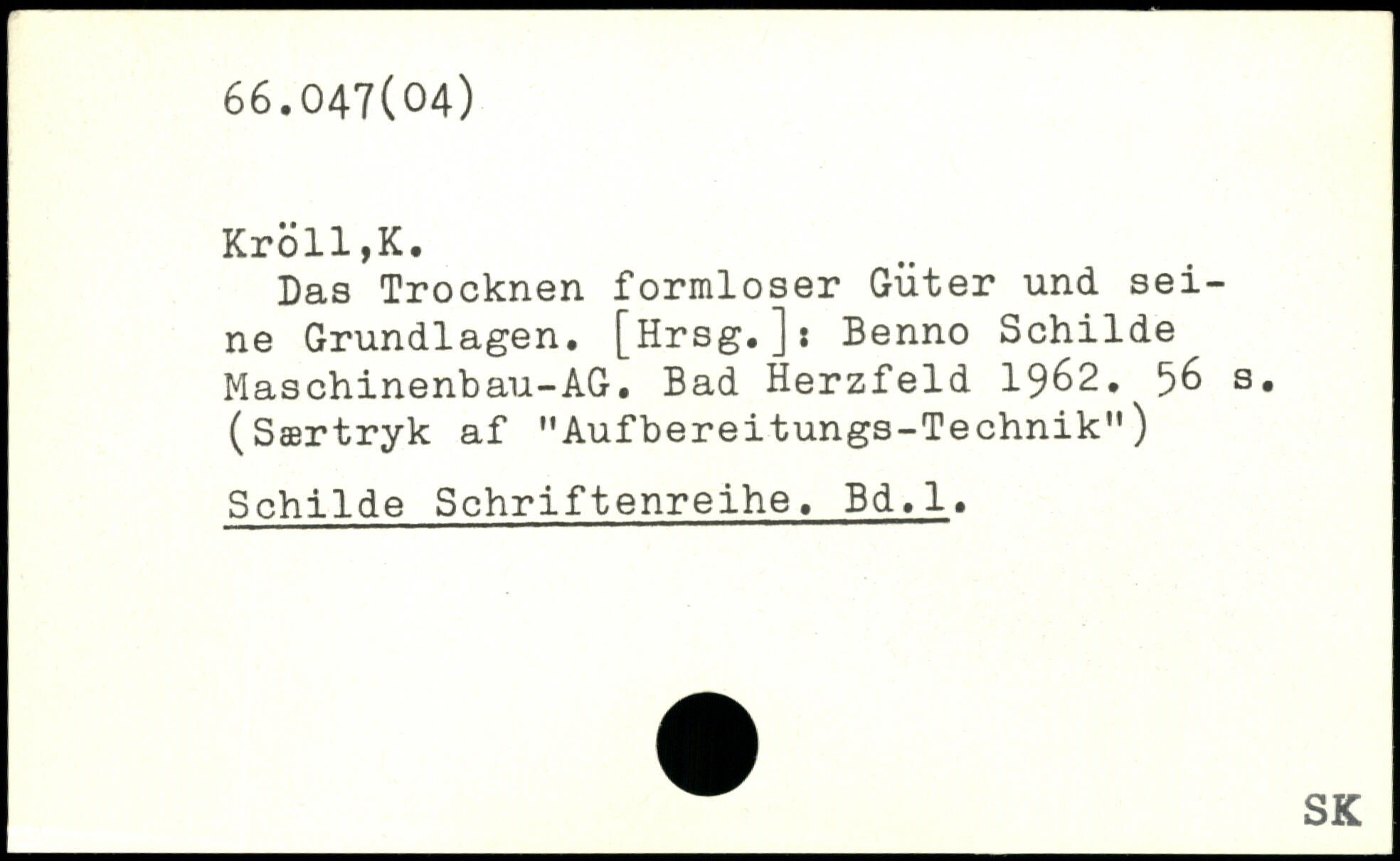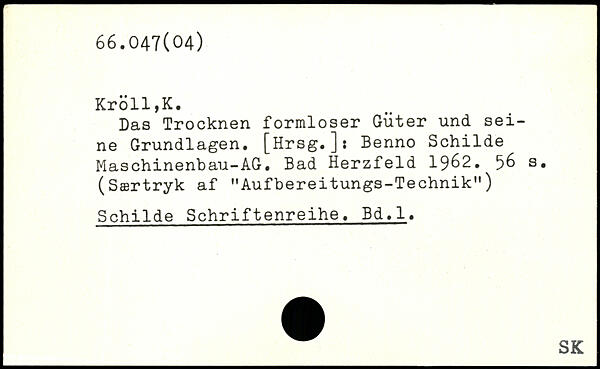 Das Trocknen formloser Güter und seine Grundlagen. [Hrsg.]: Benno Schilde Maschinenbau-AG. Bad Herzfeld 1962.