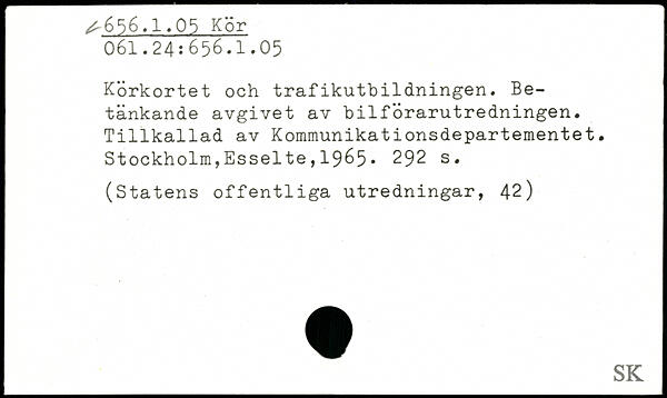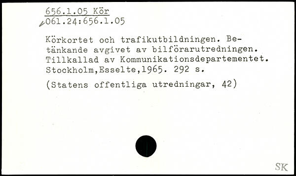 Körkortet och trafikutbildningen. Betänkande avgivet av bilförarutredningen. j Tillkallad av Kommunikationsdepartementet.