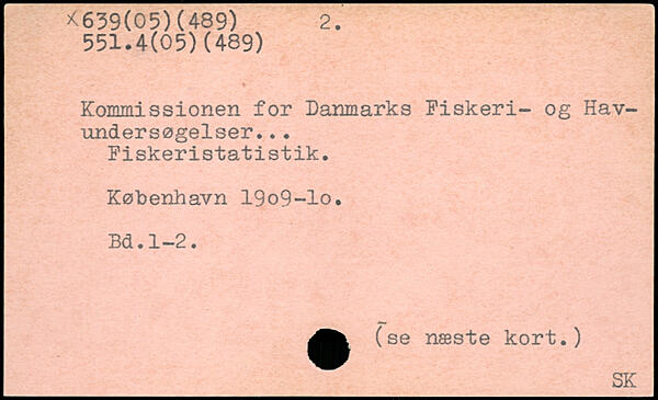 Kommissionen for Danmarks Fiskeri- og Havundersøgelser. .. Fiskeristatistik. København 19o9-lo.