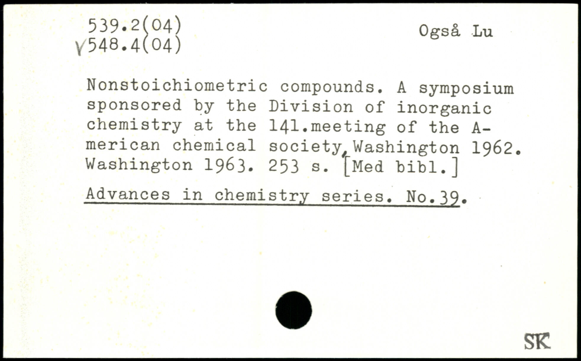 Nonstoichiometric compounds. A symposium sponsored by the Division of inorganic chemistry at the 141.meeting of the A-merican chemical society