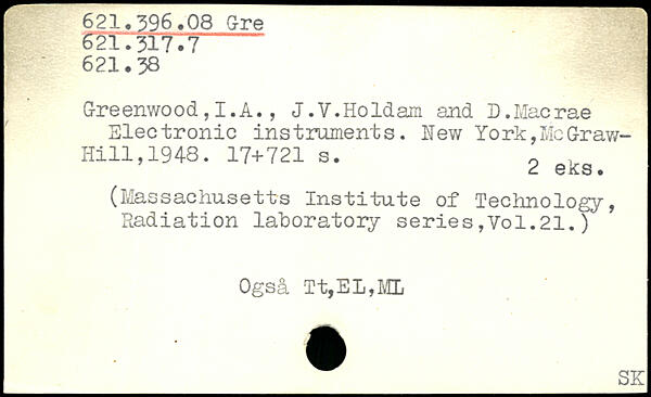 Greenwood,I.A., J.V.Holdam and D.Macrae Electronic instruments.