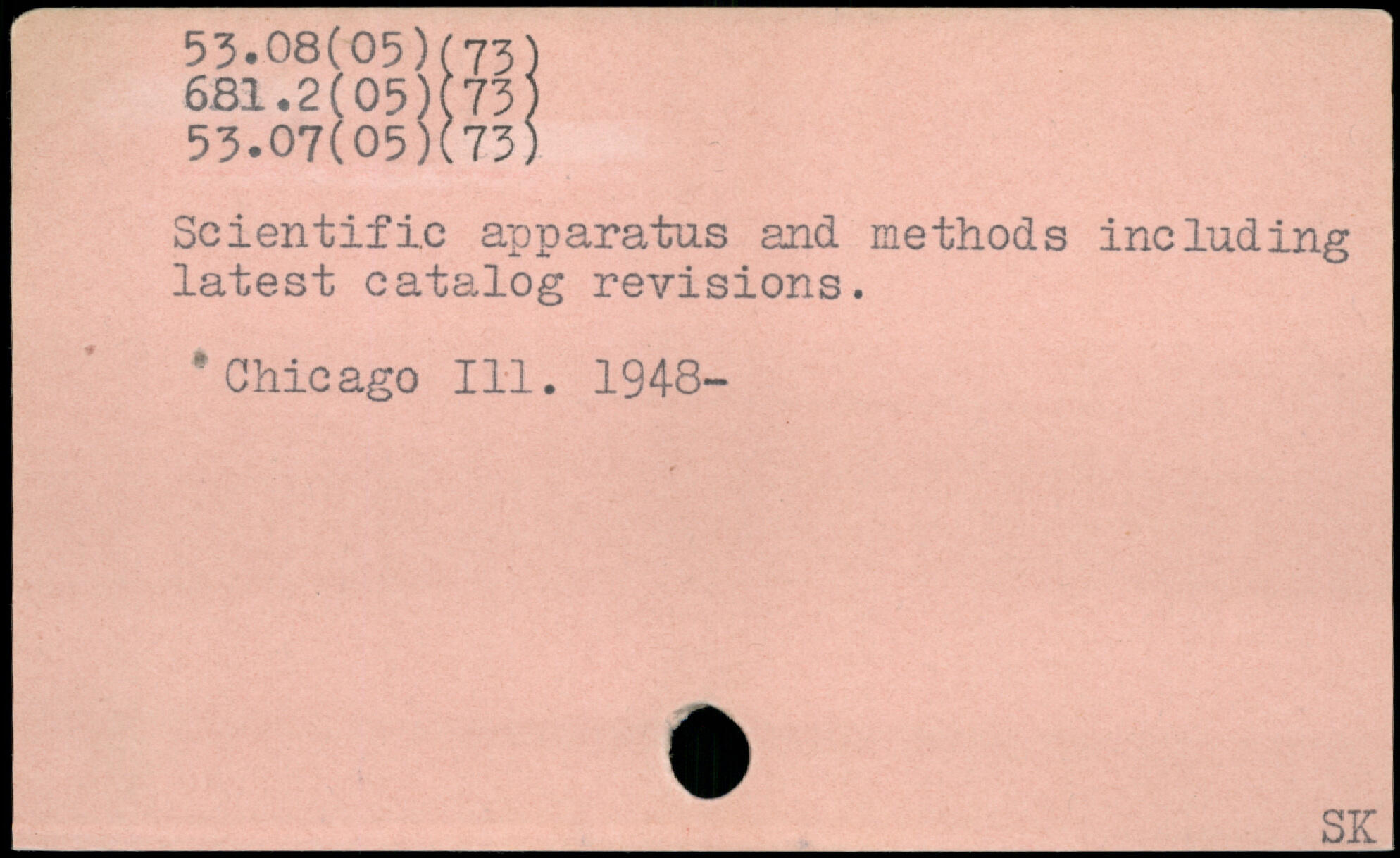 Scientific apparatus and methods including latest catalog revisions. 'Chicago 111. 1948-
