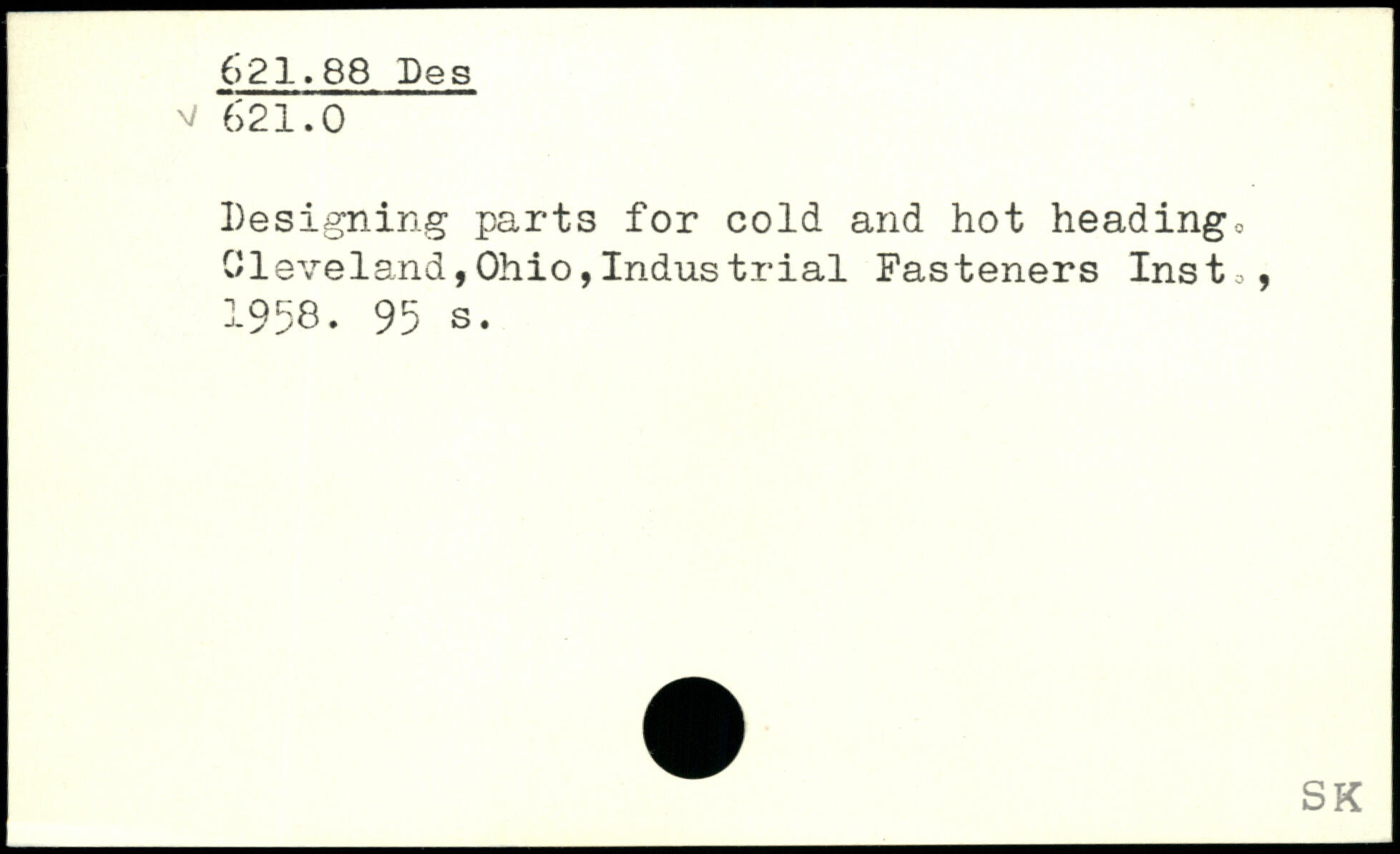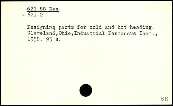 Designing parts for cold and hot headings Cleveland,Ohio,Industrial Fasteners Inst,., 1958.