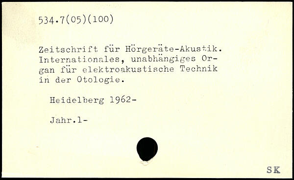 Zeitschrift, für HÖrgerate-Akustik. Internationales, unabhängiges Organ für elektroakustische Technik in der Otologie. Heidelberg 19&2- J ahr.1-