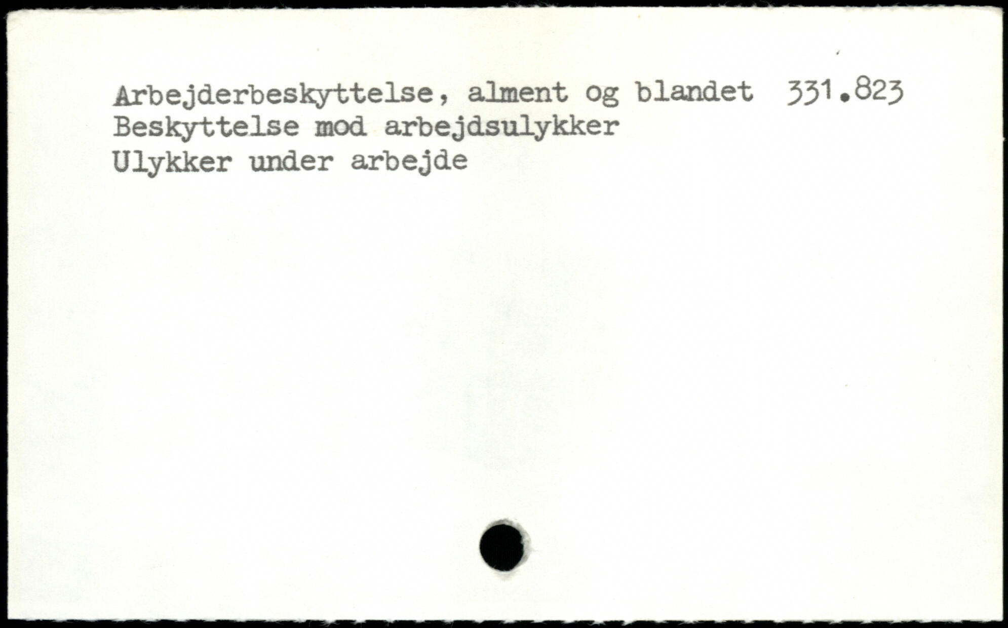 Arbejderbeskyttelse, alment og blandet 331.823 Beskyttelse mod arbejdsulykker Ulykker under arbejde