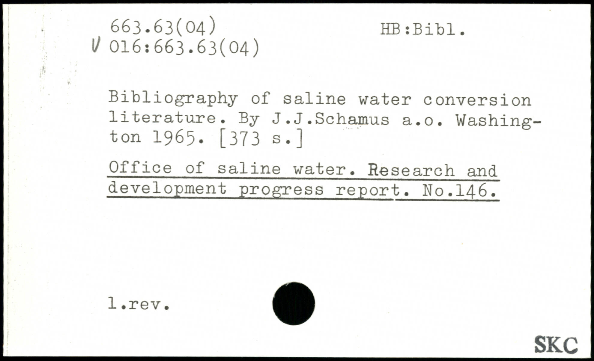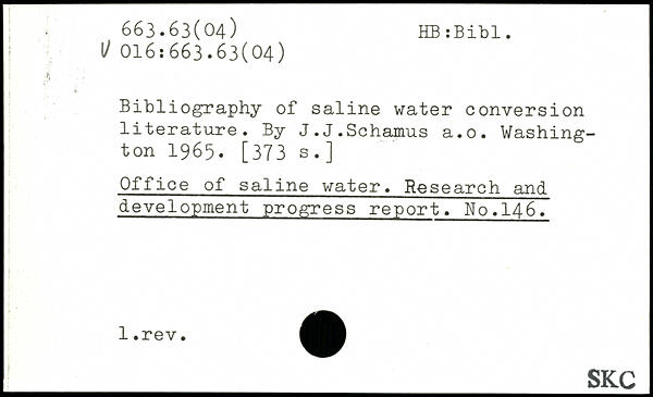Bibliography of saline water conversion literature. By J.J.Schamus a.o.