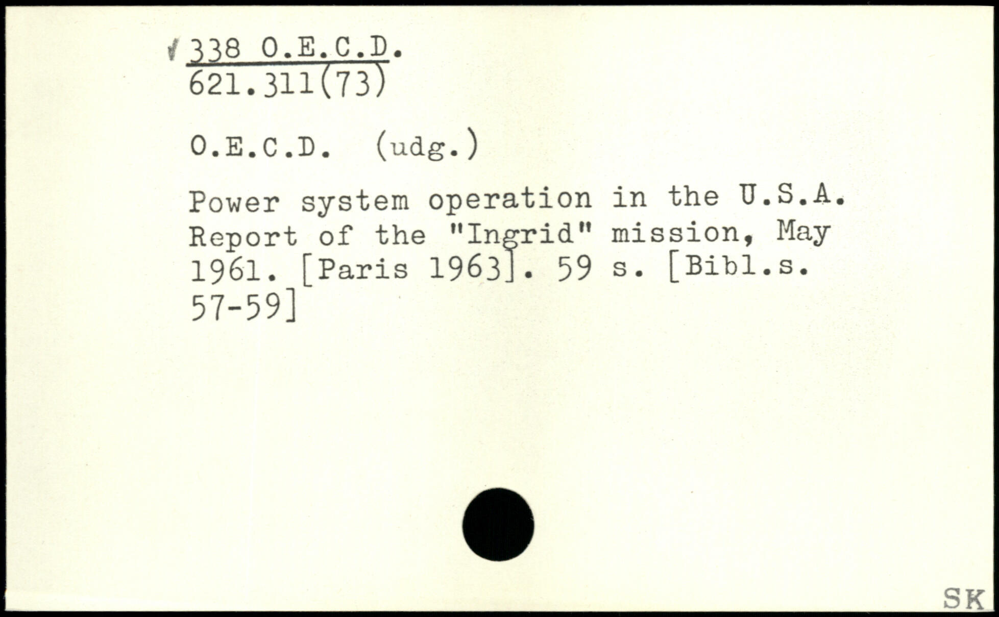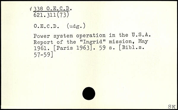 Power system operation in the U.S.A. Report of the ”Ingrid" mission, May 1961.