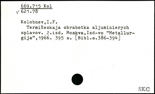 Termifceskaja obrabotka aljuminierych splavov, 2,izd, Moskva,Izd-vo "Metallur-gija”,1966.