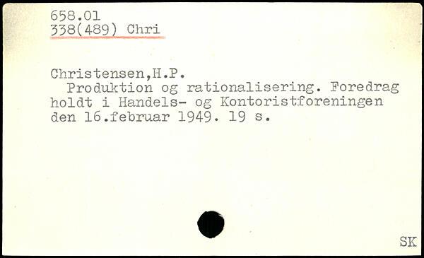 Produktion og rationalisering. Foredrag holdt i Handels- og Kontoristforeningen den 16.februar 1949.