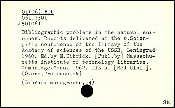 Bibliographic problems in the natural sciences. Reports delivered at the 6.Scientific conference of the Library of the Academy of sciences of the USSR