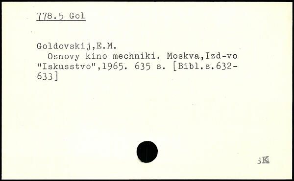 Osnovy kino mechniki. Moskva,Izd-vo "Iskusstvo",1965.